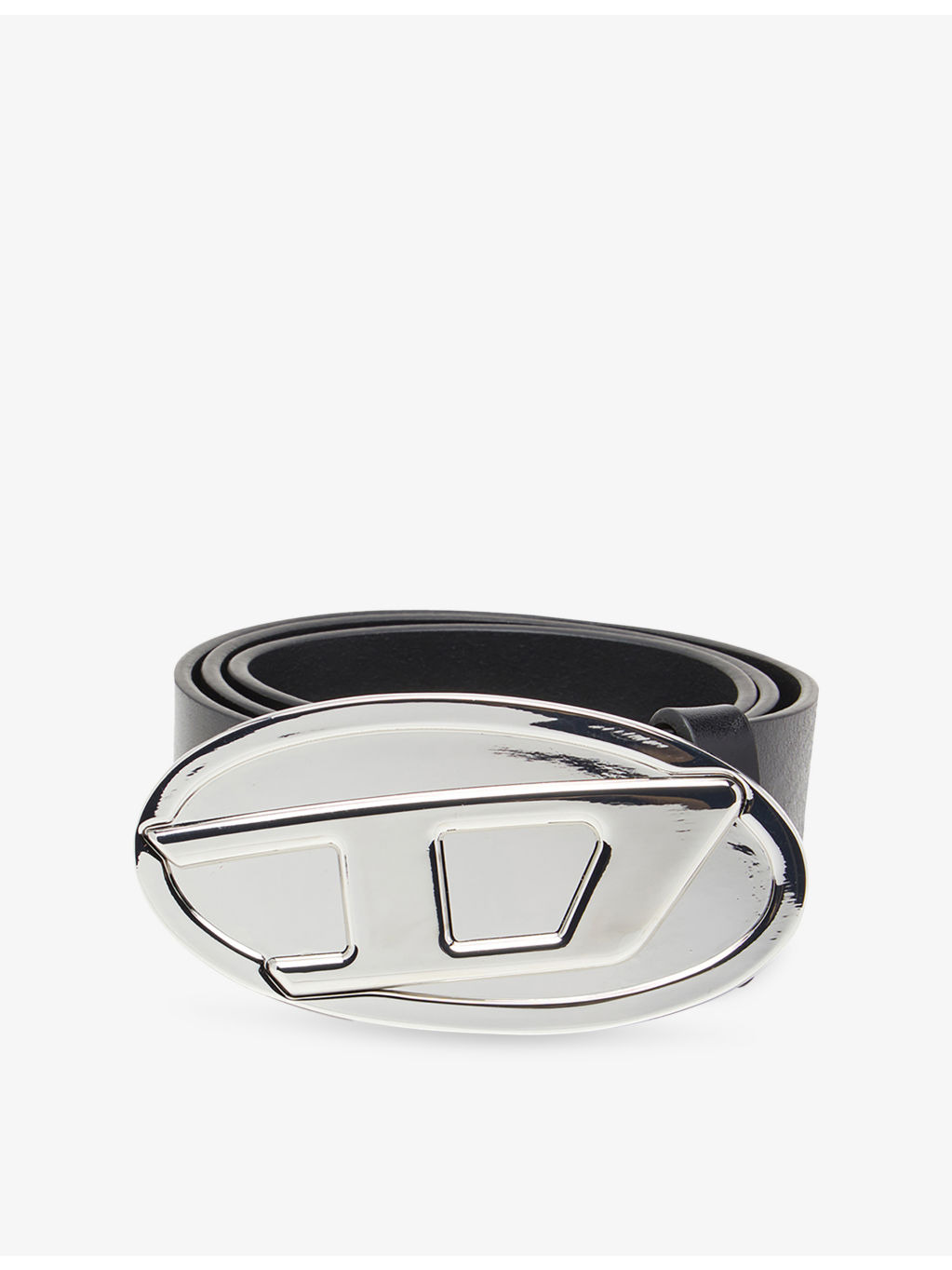 PRODUCT DETAILS - Diesel leather belt - 100% leather - Buckle fastening - Adjustable buckle, belt holes, silver-toned hardware, oval D buckle logo, all-over smooth leather texture - Specialist leather clean - Width: 4cm - Made in Italy Ref: R04479121