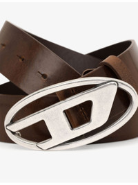 PRODUCT DETAILS - Diesel leather belt - 100% leather - Adjustable buckle fastening - 'D' logo buckle, antiqued silver-toned hardware, unisex - Specialist leather clean