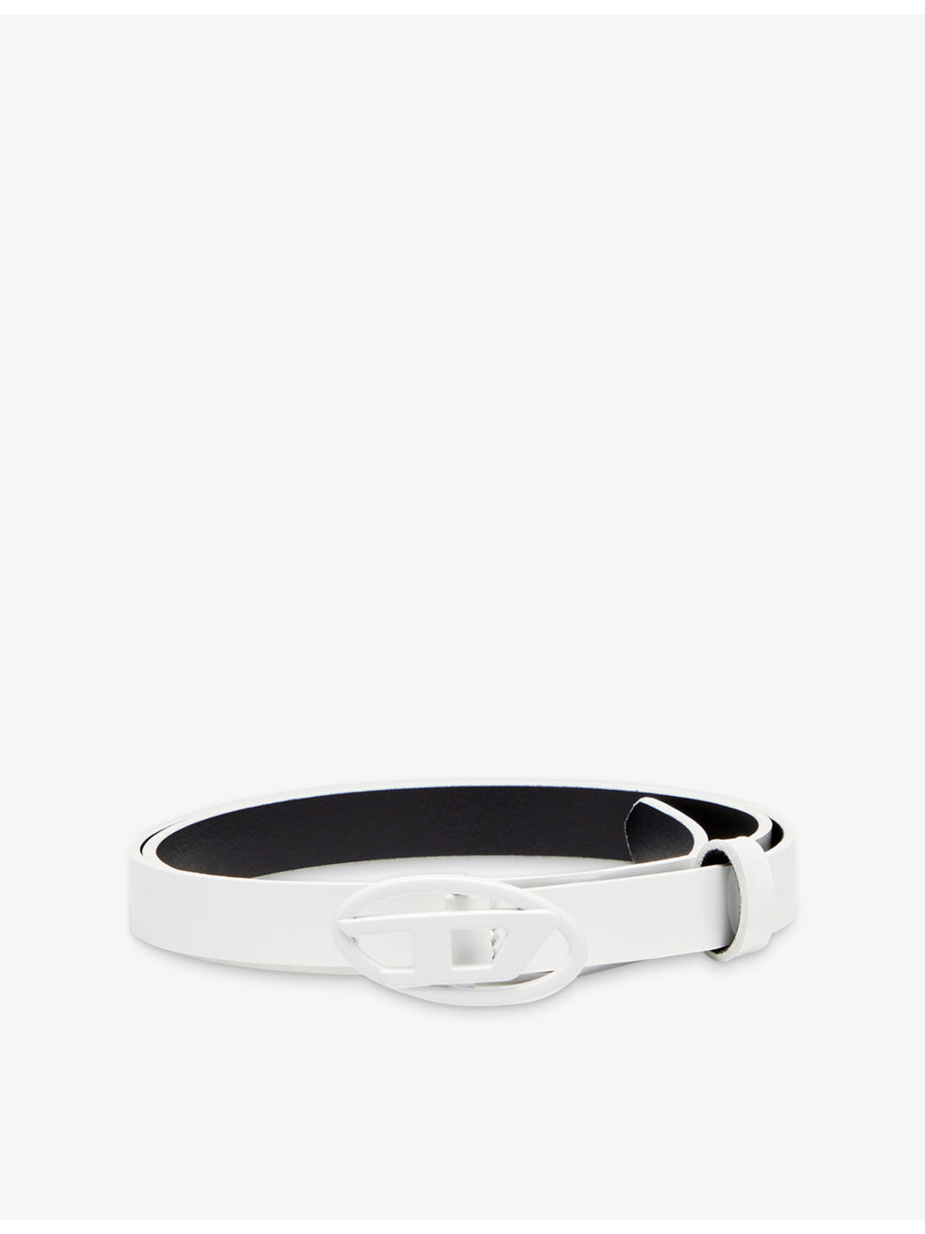 PRODUCT DETAILS - Diesel leather belt - 100% cow leather - Buckle fastening - Oval logo buckle, slim design, mirrored finish - Specialist leather clean - Width: 1.4cm Ref: R04410265