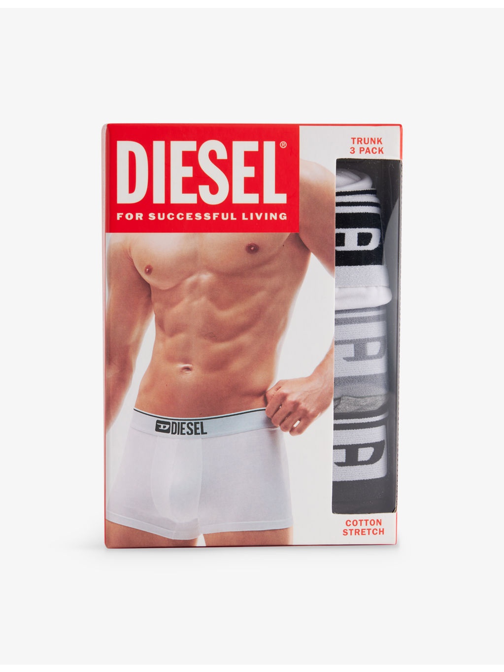 PRODUCT DETAILS - Diesel pack of three stretch-cotton trunks - 95% cotton, 5% elastane - Pulls on - Mid-rise, branded elasticated waistband, supportive panel at front - Machine wash at 30°C - Model is 6ft 2in/1.88m and wears a size medium - Lightweight, slight stretch - For hygiene reasons, we are unable to exchange or refund this product, unless faulty. Ref: R04421749