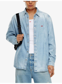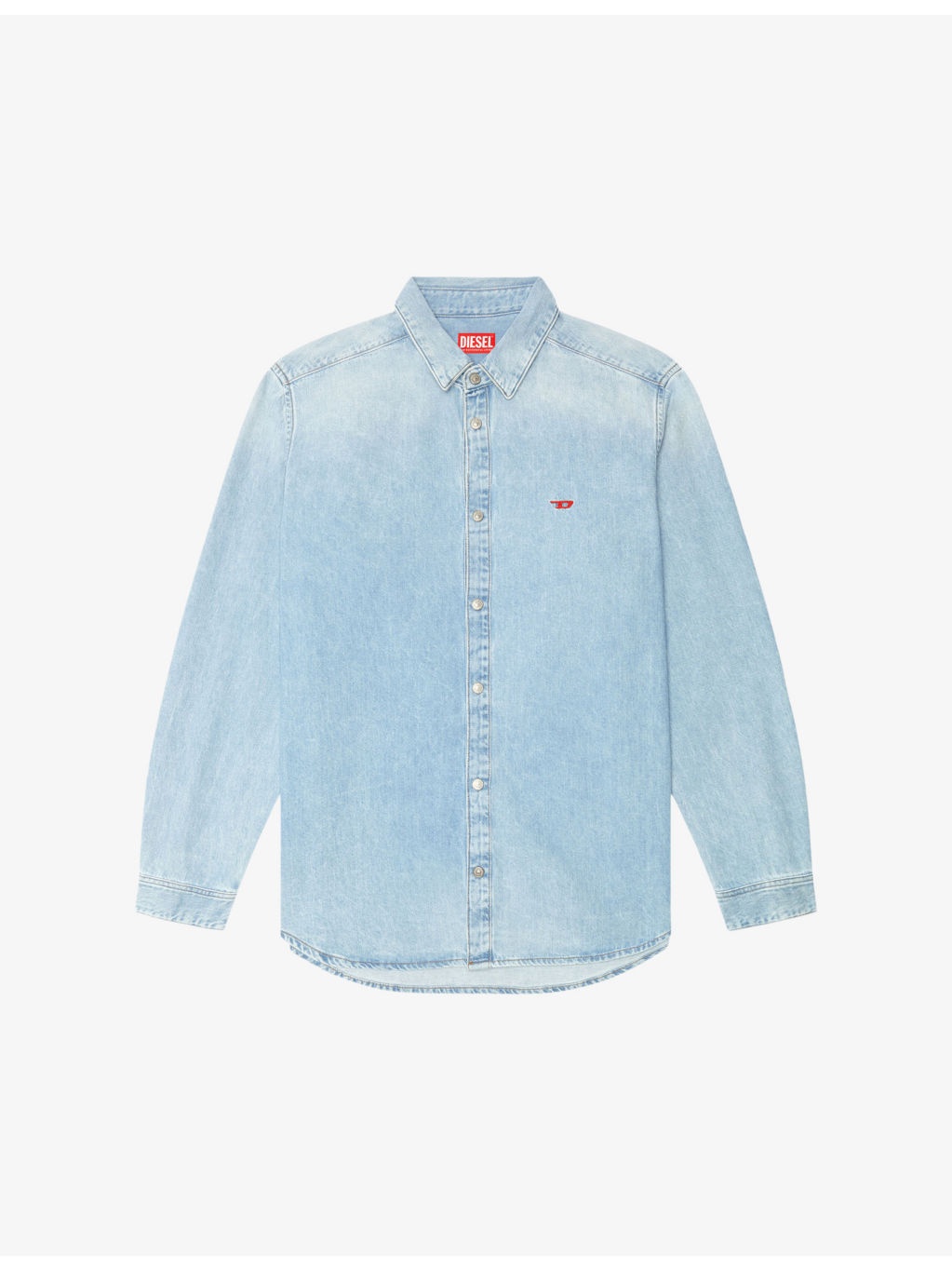 PRODUCT DETAILS - Diesel denim shirt - 100% cotton - Exposed button fastening at front - Straight fit, pointed collar, long sleeves, logo embroidery at chest - Machine wash mild - Midweight, non-stretch Ref: R04239294