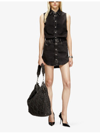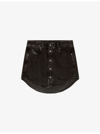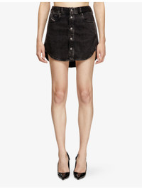 PRODUCT DETAILS - Diesel denim mini skirt - 50% lyocell, 50% cotton - Button fastening - Regular fit, mid-rise, belt loops, side pockets, back pockets, branded patch, rounded hem - Machine wash mild - True to size - Model is 5ft 9in/1.75m and wears a size UK 8 - Midweight, non-stretch Ref: R04479131