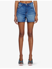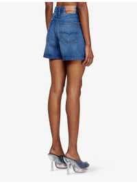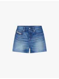 PRODUCT DETAILS - Diesel denim shorts - 100% cotton - Button and zip-fly fastening at front - Relaxed fit, low rise, straight-leg, structured waistband, belt loops, classic five pockets, brand patch at back, tonal topstitch, faded wash, whiskering detailing - Machine wash at 30°C - True to size - Lightweight, non-stretch Ref: R04479152