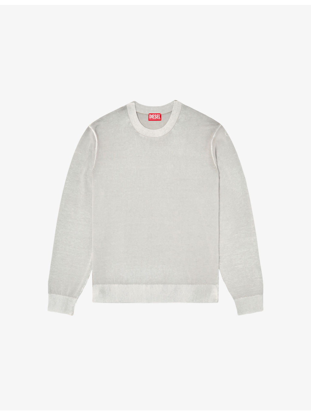 PRODUCT DETAILS - Diesel cotton-knit jumper - 100% cotton - Regular fit, crewneck, long sleeves, reverse print to inner, faded, uneven finish, reverse brand print at sleeve, ribbed trims to collar, cuffs and hem - Hand wash - Model is 6ft/1.83m and wears a size large - Midweight, non-stretch Ref: R04479582