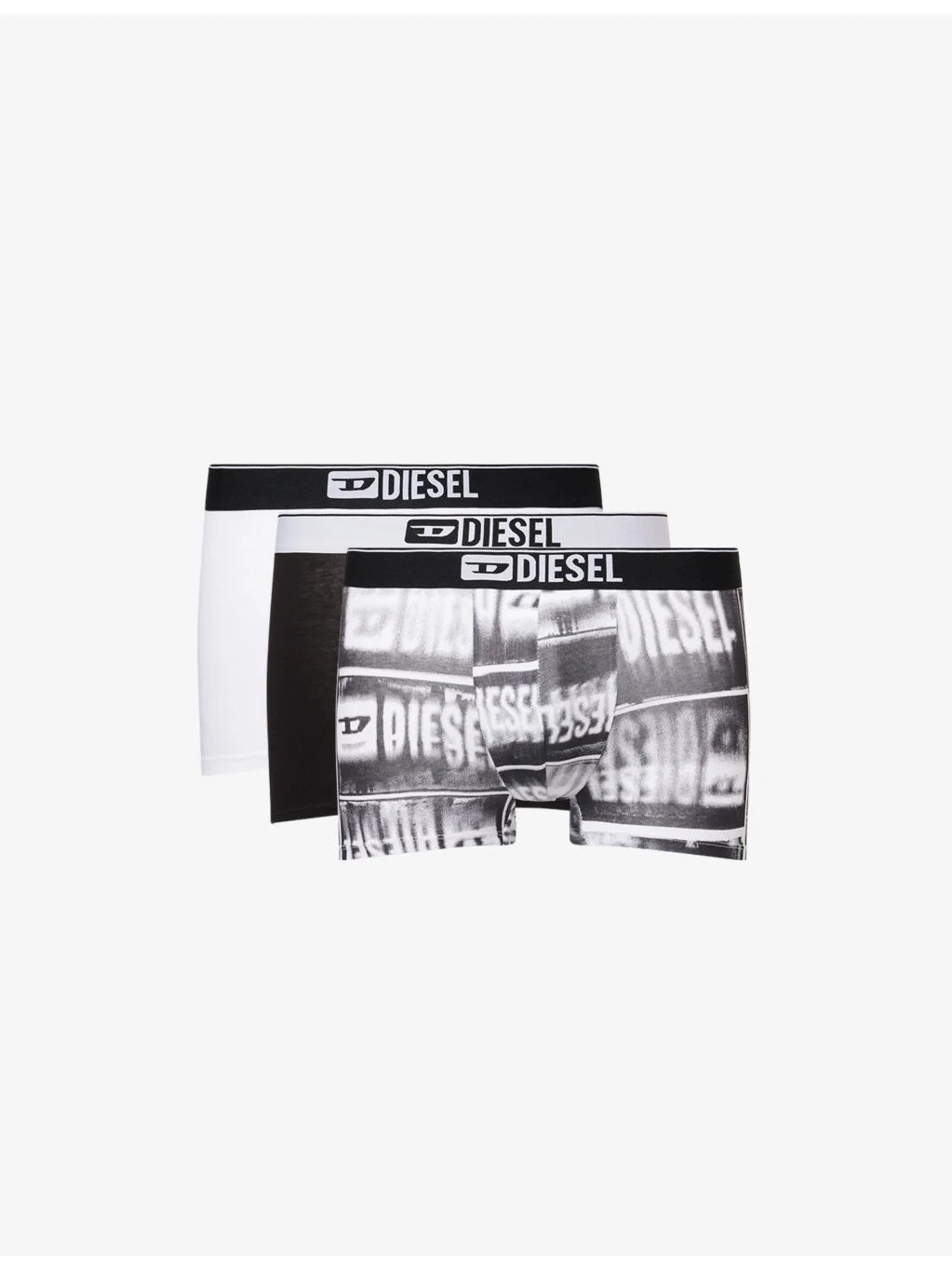 PRODUCT DETAILS - Diesel Stretch-Cotton Boxers - 95% cotton, 5% elastane - Logo waistband, close fit, front supportive pouch, graphic print - Pack of three - Machine wash mild - Lightweight, stretchy Ref: R04493524