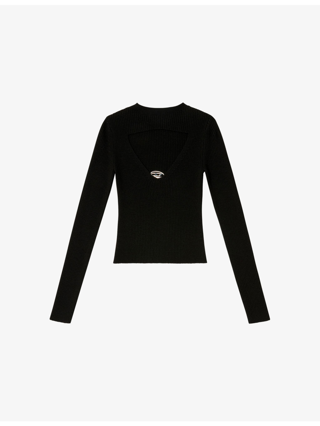 PRODUCT DETAILS - Diesel wool knitted top - 100% wool - V-neck cut-out opening, long sleeves, logo plaque at front, all-over ribbed texture - Hand wash - True to size - Lightweight, slight stretch Ref: R04479187