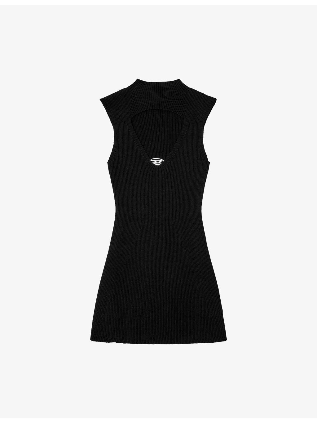 PRODUCT DETAILS - Diesel wool knitted mini dress - 100% wool - V-neck cut-out opening, sleeveless, logo plaque at front, all-over ribbed texture, mini-length - Hand wash - True to size - Lightweight, slight stretch Ref: R04479188