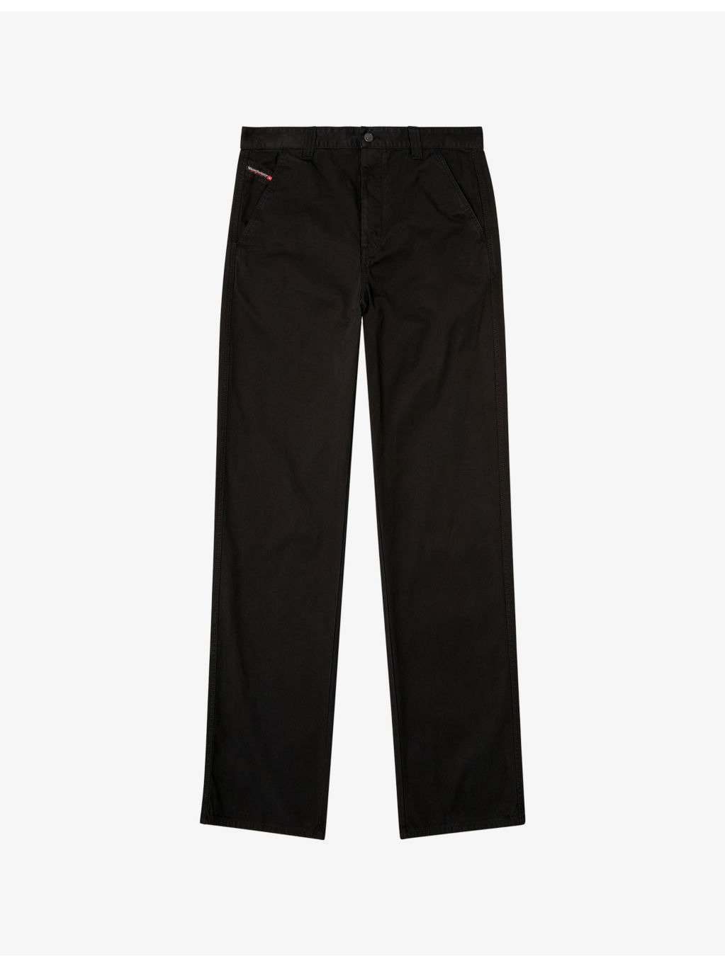PRODUCT DETAILS - Diesel cotton-twill trousers - 100% cotton - Exposed button and concealed zip-fly fastening at front - Regular fit, mid rise, belt loops, five pockets, brand patch at coin pocket, straight leg, treated finish - Machine wash at 30°C - Model is 6ft 2in/1.88m and wears a size UK 38 - Midweight, non-stretch Ref: R04479690
