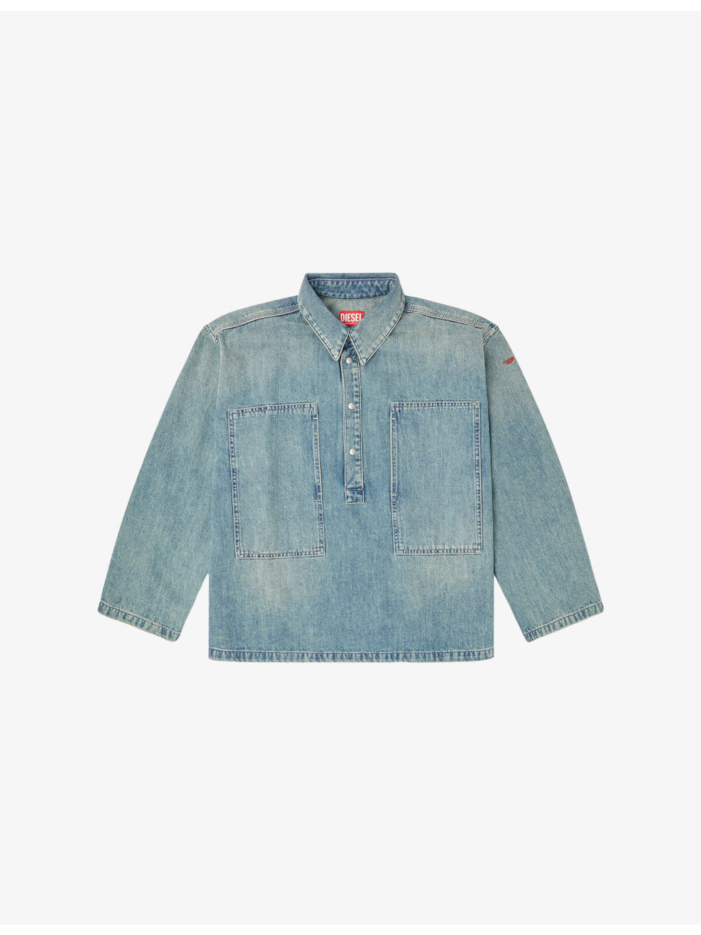 PRODUCT DETAILS - Diesel denim shirt - 100% cotton - Button fastening - Relaxed fit, collar, long sleeves, chest pockets, faded wash - Machine wash at 30°C - True to size - Model is 5ft 8in / 1.73m and wears a size small - Midweight, non-stretch Ref: R04479155