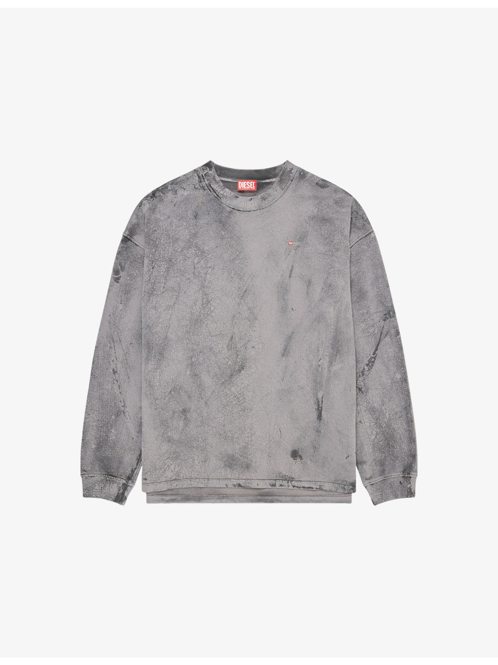 PRODUCT DETAILS - Diesel cotton-jersey sweatshirt - 100% cotton - Relaxed fit, crewneck, long sleeves, dropped shoulders, all-over cracked effect, brand embroidery at chest, side slits at hem, ribbed trim to collar and cuffs - Machine wash at 30°C - Model is 6ft/1.83m and wears a size large - Midweight, non-stretch Ref: R04479633
