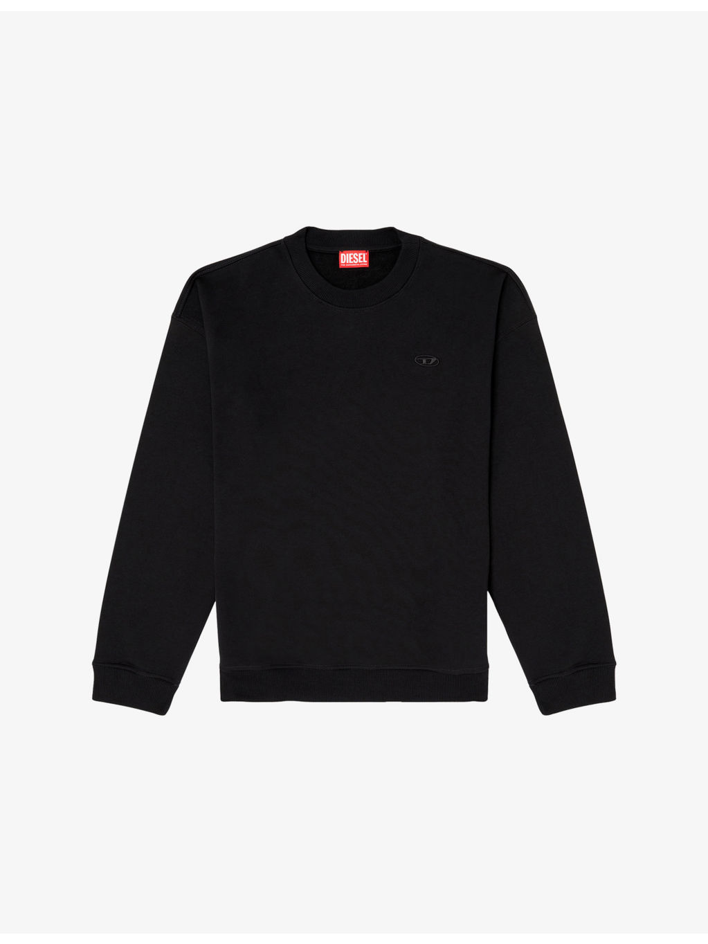 PRODUCT DETAILS - Diesel cotton-blend sweatshirt - 63% cotton, 37% polyester - Relaxed fit, crewneck, long sleeves, dropped shoulders, logo embroidery at chest, faded-effect logo print at back, ribbed trim to collar, cuffs and hem - Machine wash at 30°C - Model is 6ft/1.83m and wears a size large - Midweight, non-stretch Ref: R04479623