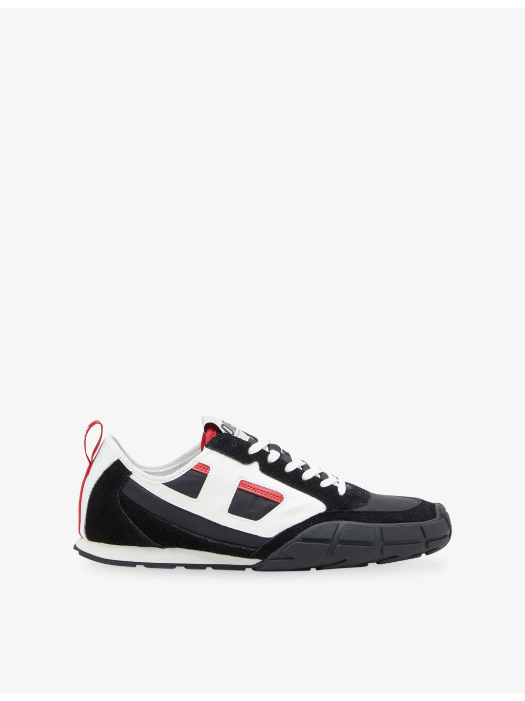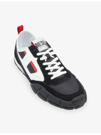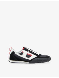PRODUCT DETAILS - Diesel leather and woven low-top trainers - 100% leather; 100% polyester - Lace-up fastening - Closed round toe, low-top silhouette, panelled upper, slanted D logo at side, brand patch at tongue, grosgrain pull-loop at back, EVA midsole - Wipe with a clean, dry cloth - Upper: 100% leather; 100% polyester - Lining: 100% textile - Sole: 100% rubber Ref: R04479401