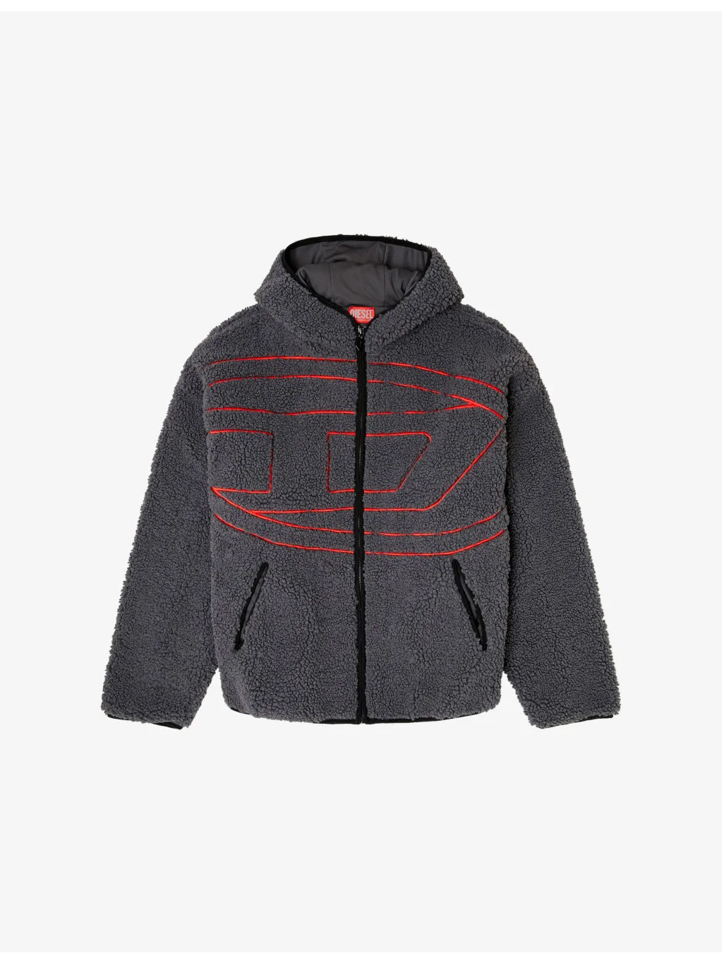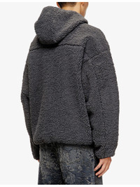 PRODUCT DETAILS - Diesel teddy hoody - 100% polyester - Exposed zip fastening at front - Relaxed fit, hooded, logo embroidery at the front, two pockets at the side, all-over teddy texture - Machine wash at 30°C - Model is 6ft 2in/1.88m and wears a size medium - Midweight, non-stretch Ref: R04479553