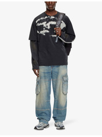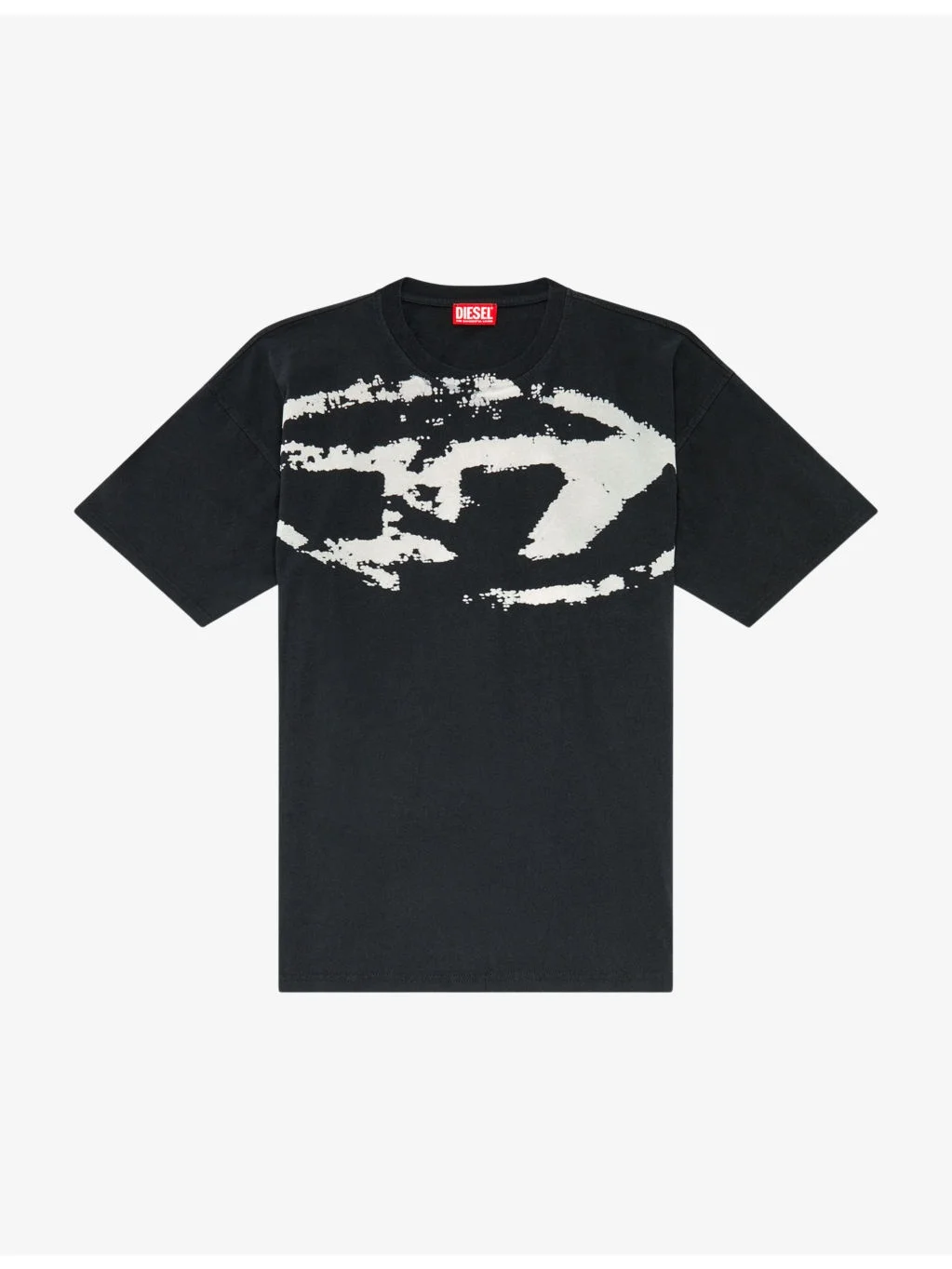 PRODUCT DETAILS - Diesel cotton T-shirt - 100% cotton; flock print 100% nylon - Pulls on - Relaxed fit, crewneck, short sleeves, large oval logo-flocked print at front - Machine wash mild - Model is 5ft 10in/1.78m and wears a size large - Lightweight, non-stretch Ref: R04336988