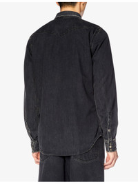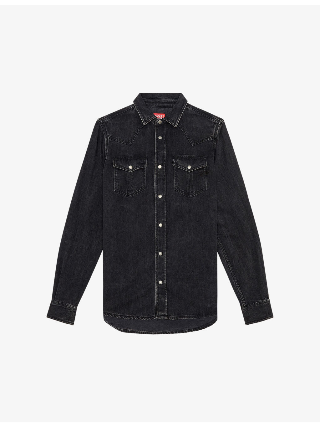PRODUCT DETAILS - Diesel denim overshirt - 50% cotton, 50% lyocell - Exposed button fastening at front - Western style, pointed collar, long sleeves, two patch pockets at front, all-over contrast top stitching, curved hem - Machine wash mild - Midweight, non-stretch - Machine wash mild - Model is 5ft 10in/1.78m and wears a size large Ref: R04239379