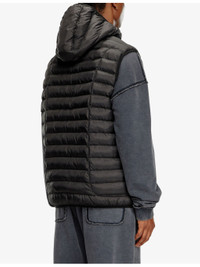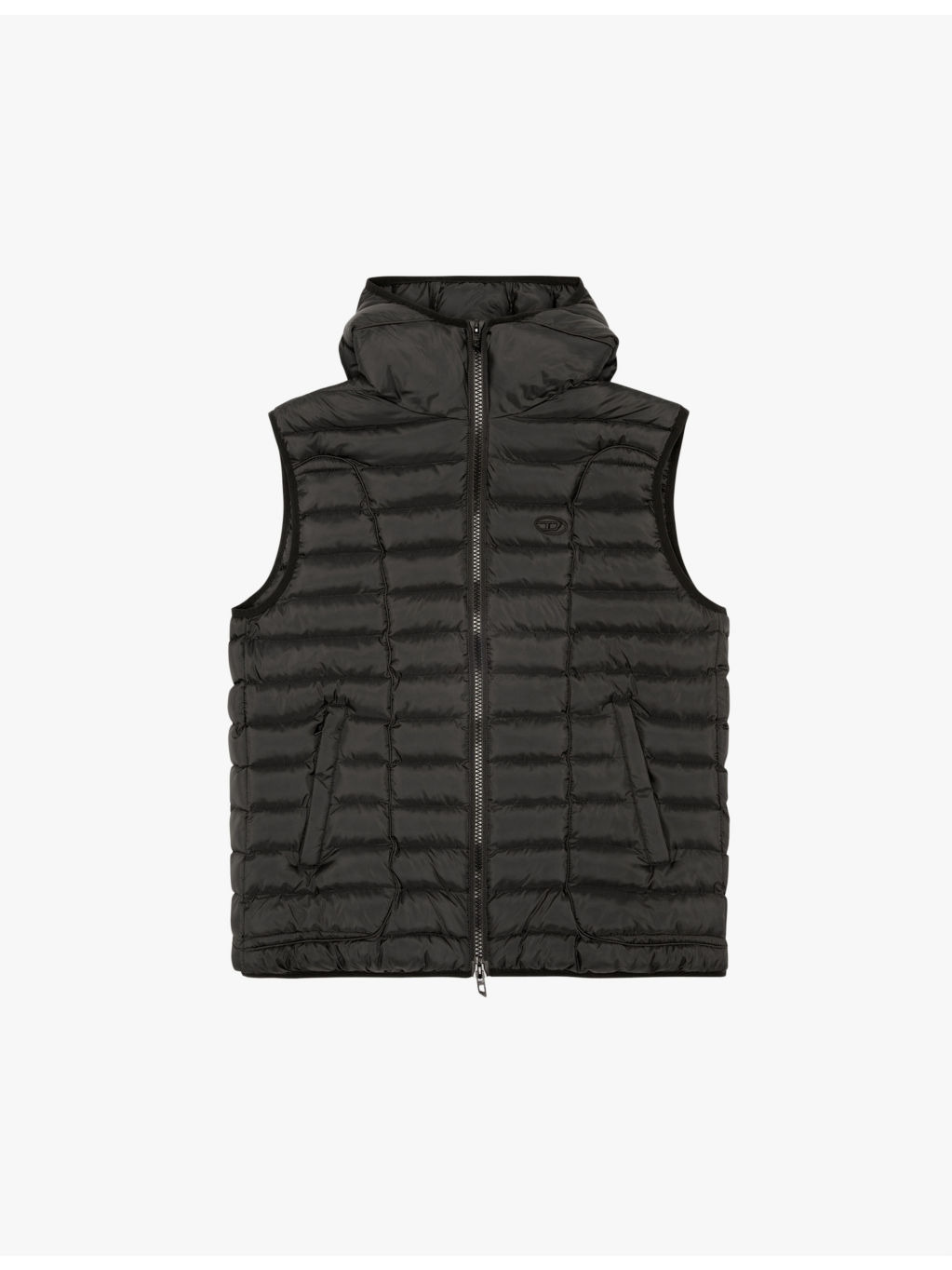 PRODUCT DETAILS - Diesel shell gilet - 100% polyester - Exposed zip fastening at front - Hood, sleeveless, embroidered oval D at chest, two concealed zip-fastened pockets at front, padded quilting, lined - Machine wash mild - Model is 6ft 2in/1.88m and wears a size UK 36 - Midweight, non-stretch Ref: R04336923