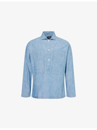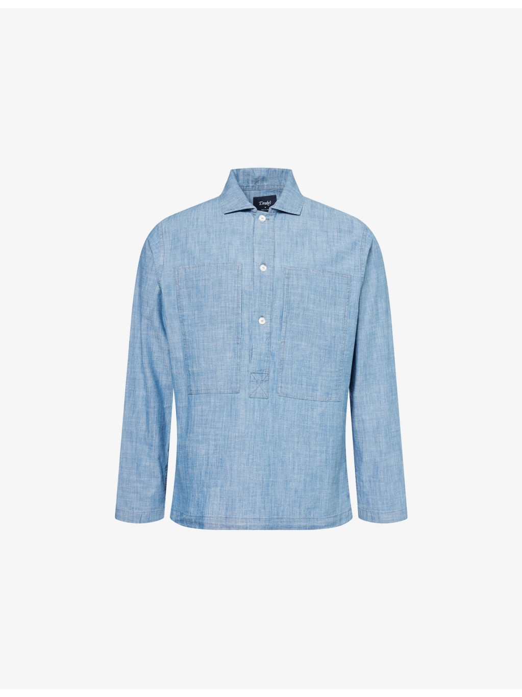 PRODUCT DETAILS - Drake's cotton shirt - 100% cotton - Button fastening - Spread collar - Regular fit, collar, long sleeves, pockets at chest, chambray weave, pearlescent buttons - Machine wash cold - Made in Italy - Model is 6ft 2in/1.88m and wears a size medium - Lightweight, non-stretch Ref: R04440983