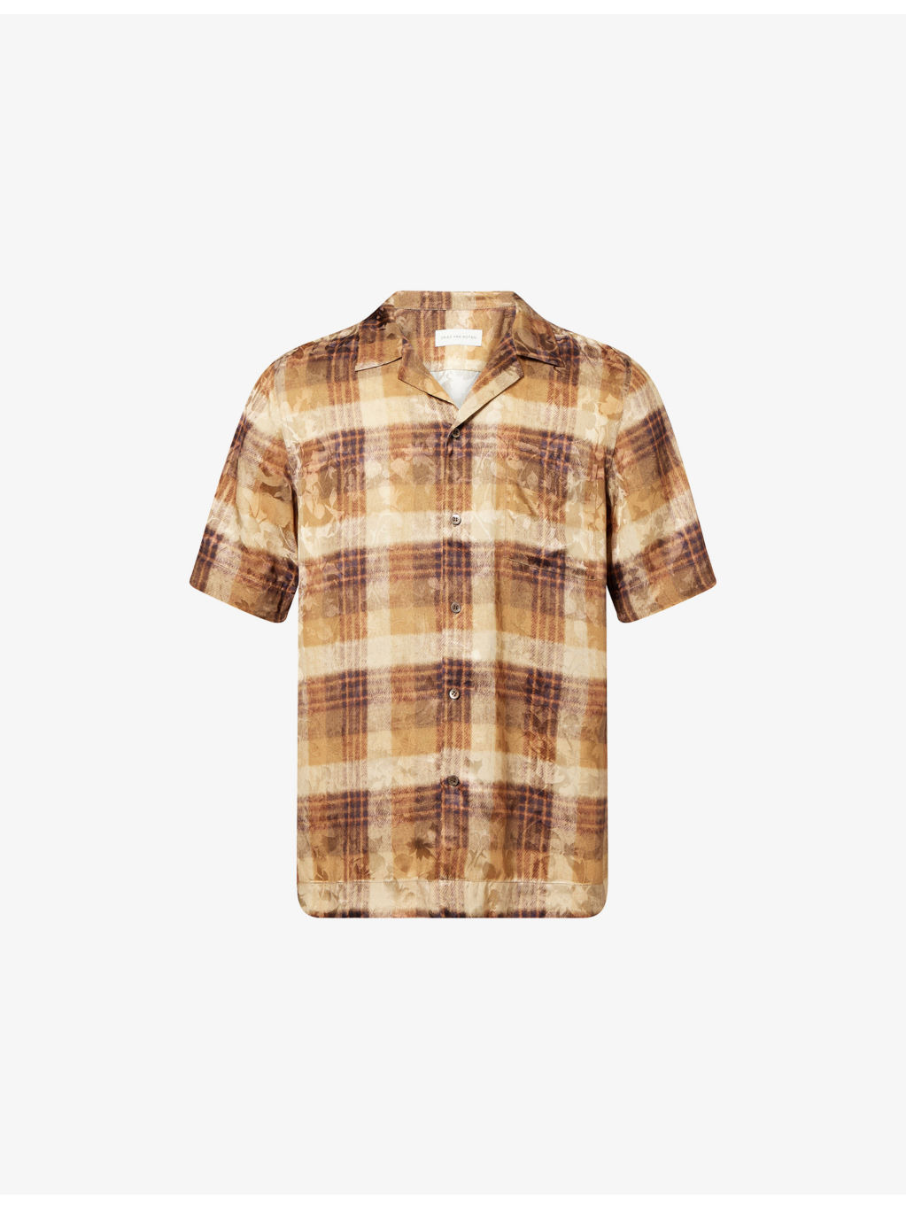 PRODUCT DETAILS - Dries Van Noten woven shirt - 100% viscose - Exposed button fastening at front - Notched collar, short sleeves, all-over graphic print detail, side hem slits - Dry clean - Made in Tunisia - Size UK 40: length 30.3in / 77cm, chest 46in / 117cm - Model is 6ft 2in/1.88m and wears a size UK 40 - Lightweight, non-stretch Ref: R04493069