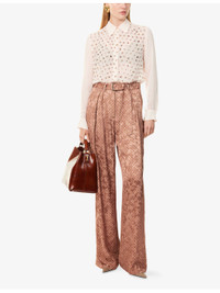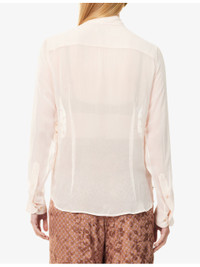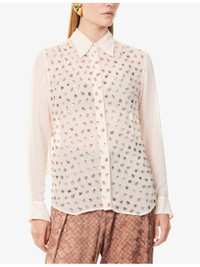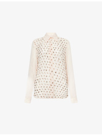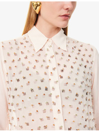 PRODUCT DETAILS - Dries Van Noten woven shirt - 100% viscose - Pointed collar, long sleeves, buttoned cuffs, all-over embellishment at front, semi-sheer, curved hem - Dry clean - Made in India - True to size - Size UK 6: length 28.3in / 72cm - Model is 5ft 10in/1.78m and wears a size UK 6 - Lightweight, non-stretch Ref: R04495734