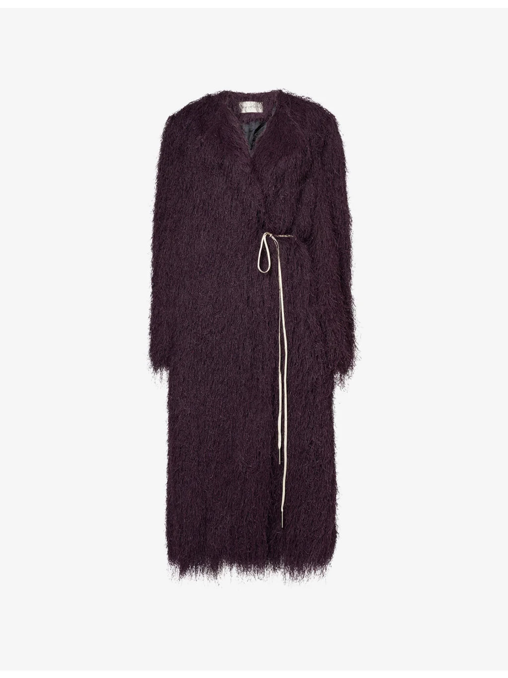 PRODUCT DETAILS - Dries Van Noten fringed coat - 100% polyester; lining 100% viscose - Self-tie fastening - Relaxed fit, collarless, open front, long sleeves, self-tie belt at waist, all-over fringing, fully lined - Dry clean - Made in Poland - True to size - Size small: length 51in / 129.5cm - Model is 5ft 10in/1.78m and wears a size small - Midweight, non-stretch Ref: R04602558