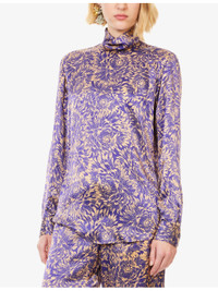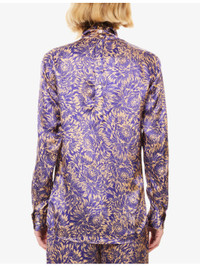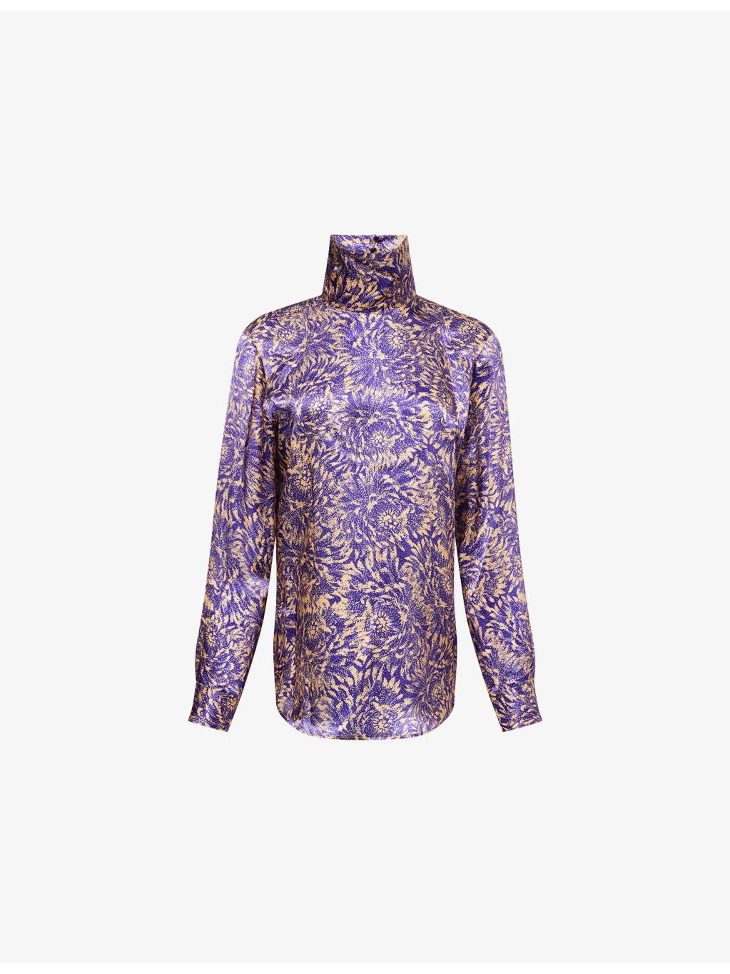 PRODUCT DETAILS - Dries Van Noten silk shirt - 100% silk - Button fastening - Regular fit, high neck, long sleeves, buttoned cuffs, all-over abstract print - Dry clean only - Made in Belgium - True to size - Model is 5ft 10in/1.78m and wears a size UK 8 - Lightweight, non-stretch Ref: R04553131