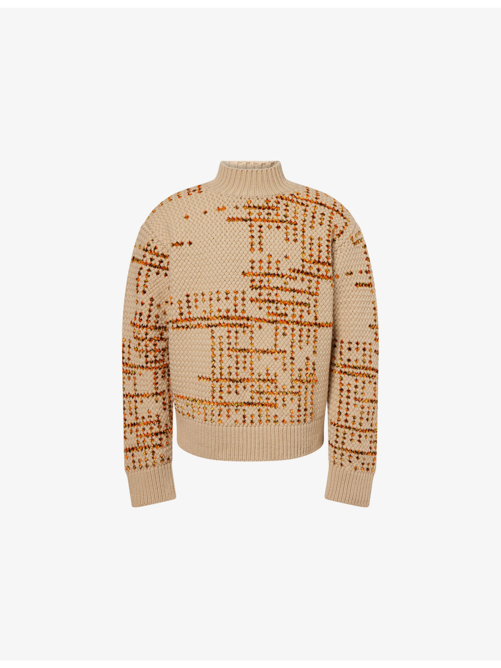 PRODUCT DETAILS - Dries Van Noten wool-blend jumper - 82% wool, 18% viscose - High neck, long sleeves, all-over patterned detailing, ribbed trims - Dry clean - Made in Belgium - Model is 6ft 2in/1.88m and wears a size medium - Midweight, stretchy Ref: R04493080