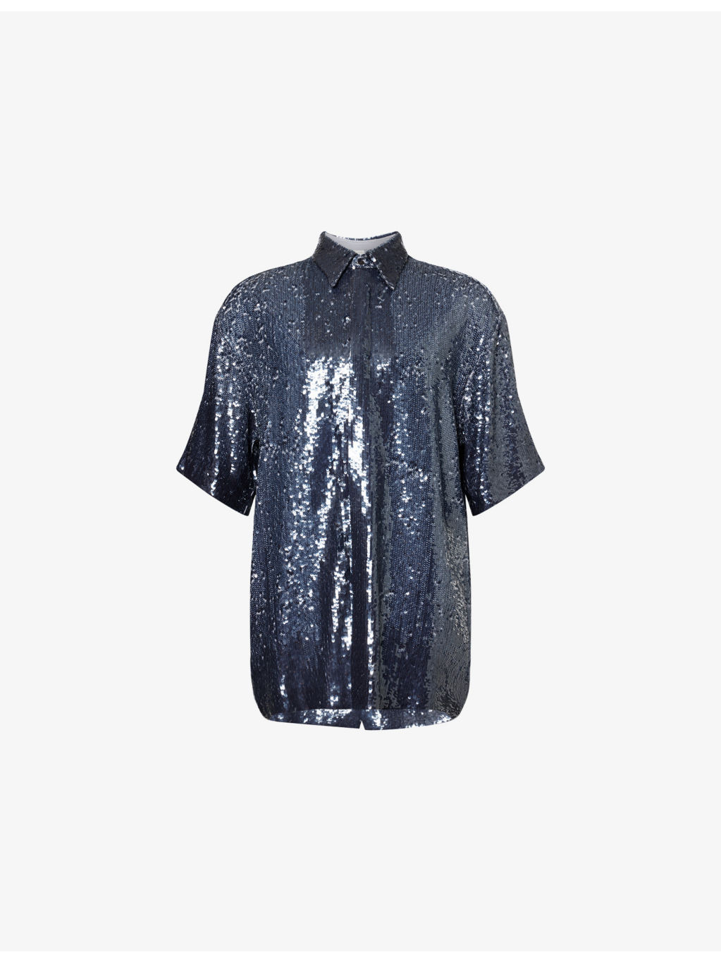 Sequin-Embellished Short-Sleeves Woven Shirt