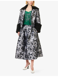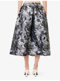 PRODUCT DETAILS - Dries Van Noten woven midi skirt - 100% polyester - Concealed zip fastening - Regular fit, mid-rise, structured waistband, pin-tuck pleats, slip pockets at front, floral jacquard pattern, flared hem - Dry clean - True to size - Size UK 8: length 33in / 84cm - Model is 5ft 10in/1.78m and wears a size UK 8 - Lightweight, non-stretch Ref: R04553129