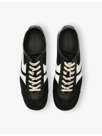 PRODUCT DETAILS - Dries Van Noten suede and leather low-top trainers - 100% leather - Lace-up fastening - Low top, round closed toe, stripe embroidery at side and back, branded footbed, flat sole - Specialist leather clean - Made in Italy - Upper: 100% leather - Lining: 100% leather - Sole: 100% rubber Ref: R04422462