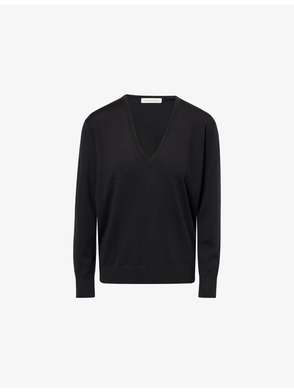 PRODUCT DETAILS - Dries Van Noten merino wool jumper - 100% merino wool - Relaxed fit, v-neck, long sleeves, ribbed trims - Hand wash - True to size - Model is 5ft 10in/1.78m and wears a size small - Lightweight, stretchy Ref: R04557797