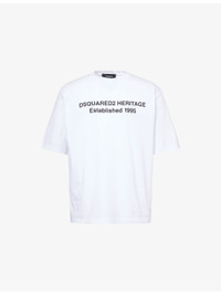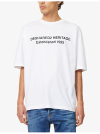 PRODUCT DETAILS - Dsquared2 cotton t-shirt - 100% cotton - Relaxed fit, crew neck, short sleeves, text print at front, straight hem - Machine wash mild - Model is 6ft 2in/1.88m and wears a size medium - Lightweight, non-stretch Ref: R04475840
