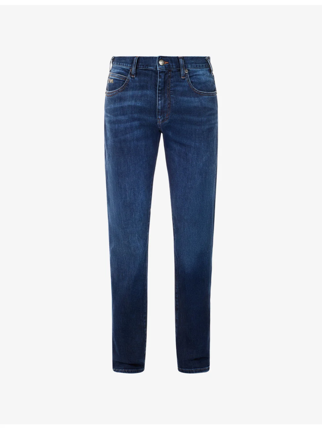 PRODUCT DETAILS - Emporio Armani stretch-denim jeans - 98% cotton, 2% elastane - Button and zip-fly fastening at front - Straight leg, regular fit, structured waistband, belt loops, classic five pockets, faded wash, brand plaque at front and back pocket - Machine wash at 30°C - Made in Tunisia - Size UK 32/32: rise 9.8in / 25cm, inside leg 32.2in / 82cm, leg opening 13.5in / 34.5cm - Model is 6ft 2in/1.88m and wears a size UK 32 - Midweight, slight stretch Ref: R04556440