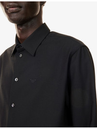 PRODUCT DETAILS - Emporio Armani wool shirt - 96% wool, 4% elastane - Exposed button fastening at front - Regular fit, classic collar, long sleeves, buttoned cuffs, curved hem - Dry clean - True to size - Size medium: length 30in / 76cm, chest 42in / 107.1cm - Model is 6ft 2in/1.88m and wears a size medium - Lightweight, slight stretch Ref: R04556469