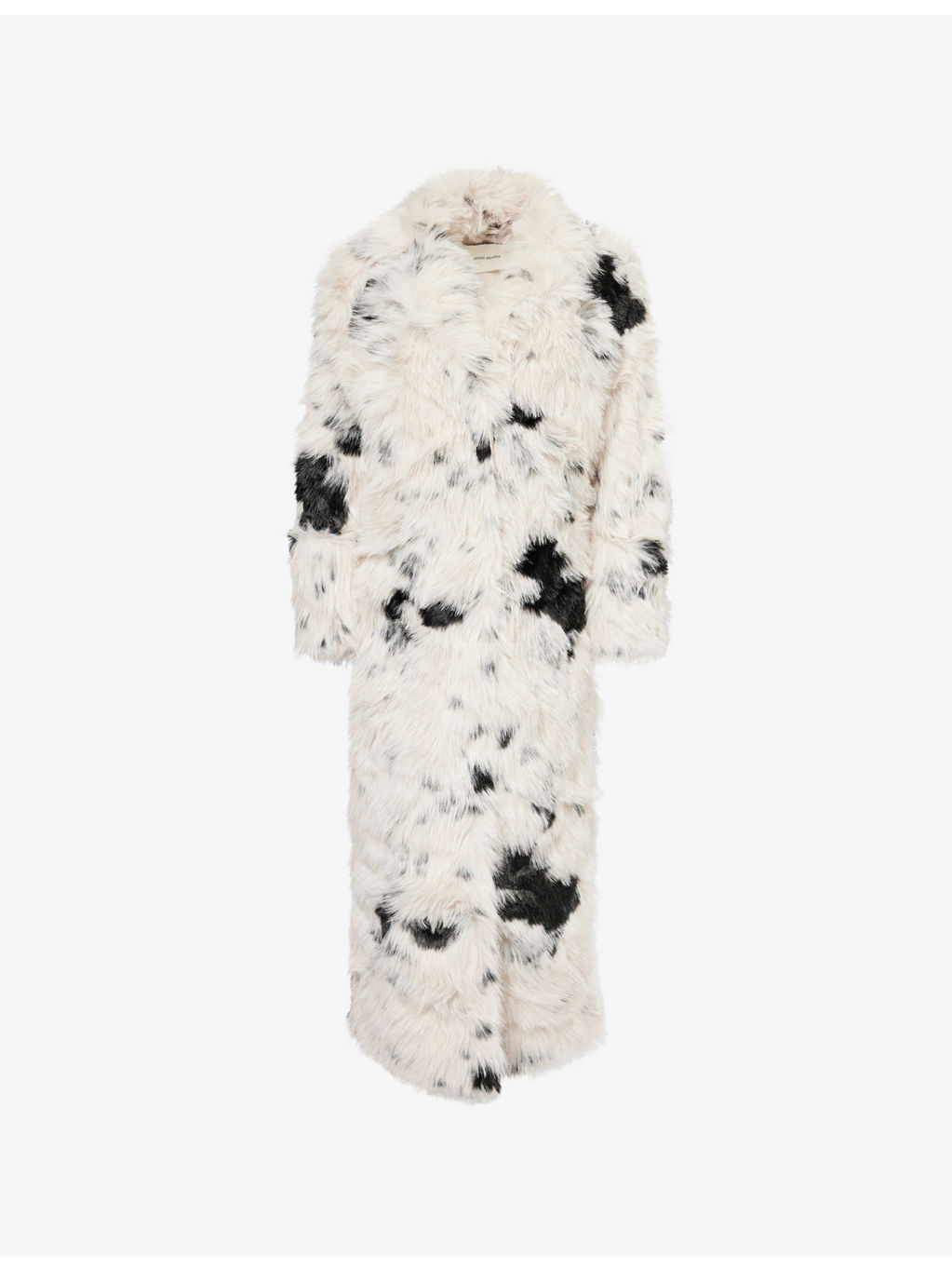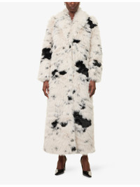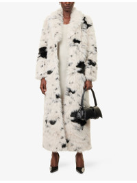 PRODUCT DETAILS - ENTIRE STUDIOS faux-fur coat - 100% polyester; contrast 50% wool, 50% polyester; lining 55% polyester, 45% viscose - Concealed popper fastening at front - Relaxed fit, notch lapels, long sleeves, two slip pockets at front, all-over faux-fur texture, all-over abstract print, fully lined - Dry clean only - True to size - Size small: length 51in / 130cm - Model is 5ft 10in/1.78m and wears a size small - Midweight, slight stretch Ref: R04480536