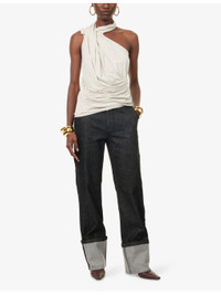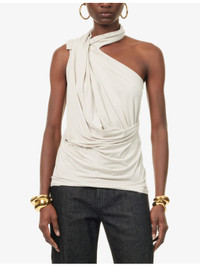 PRODUCT DETAILS - ENTIRE STUDIOS stretch-woven top - 92% viscose, 8% elastane - Slim fit, band-collar, asymmetric neckline, sleeveless, draped - Machine wash at 30°C - True to size - Model is 5ft 10in/1.78m and wears a size small - Lightweight, stretchy Ref: R04480543