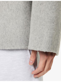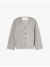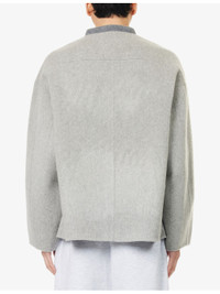 PRODUCT DETAILS - ENTIRE STUDIOS wool jacket - 100% wool - Exposed button fastening at front - Relaxed fit, V-neck, dropped shoulders, long sleeves, brushed, unlined - Dry clean - Size medium: length 30.3in / 77cm, chest 48in / 122cm - Model is 6ft 2in/1.88m and wears a size medium - Midweight, slight stretch Ref: R04548074