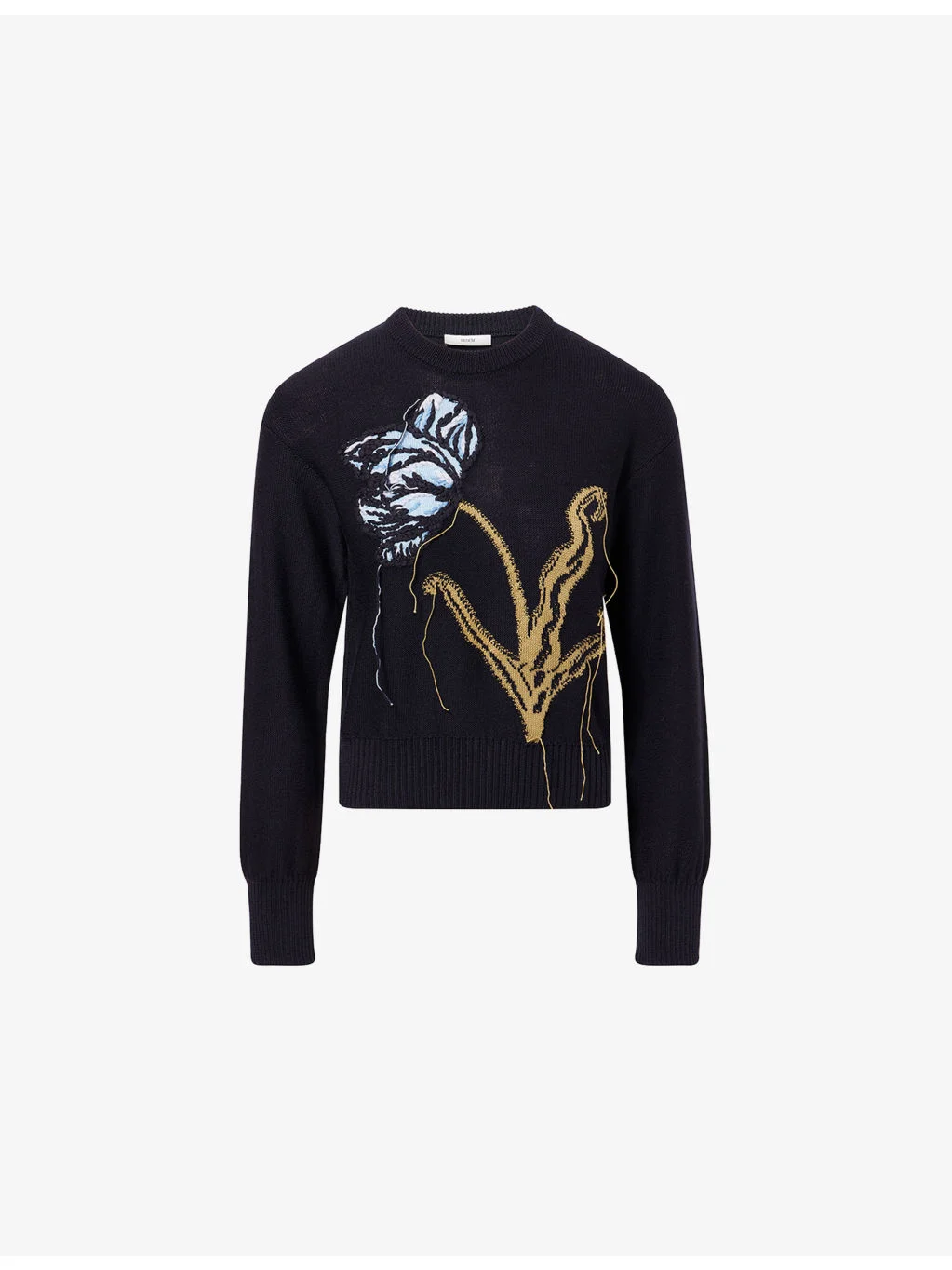 PRODUCT DETAILS - Erdem wool-and-cotton blend jumper - 95% wool, 5% cotton - Regular fit, round neck, long sleeves, embroidered floral motif at front, ribbed trims - Hand wash - Made in Italy - True to size - Model is 5ft 10in/1.78m and wears a size small - Lightweight, slight stretch Ref: R04563106