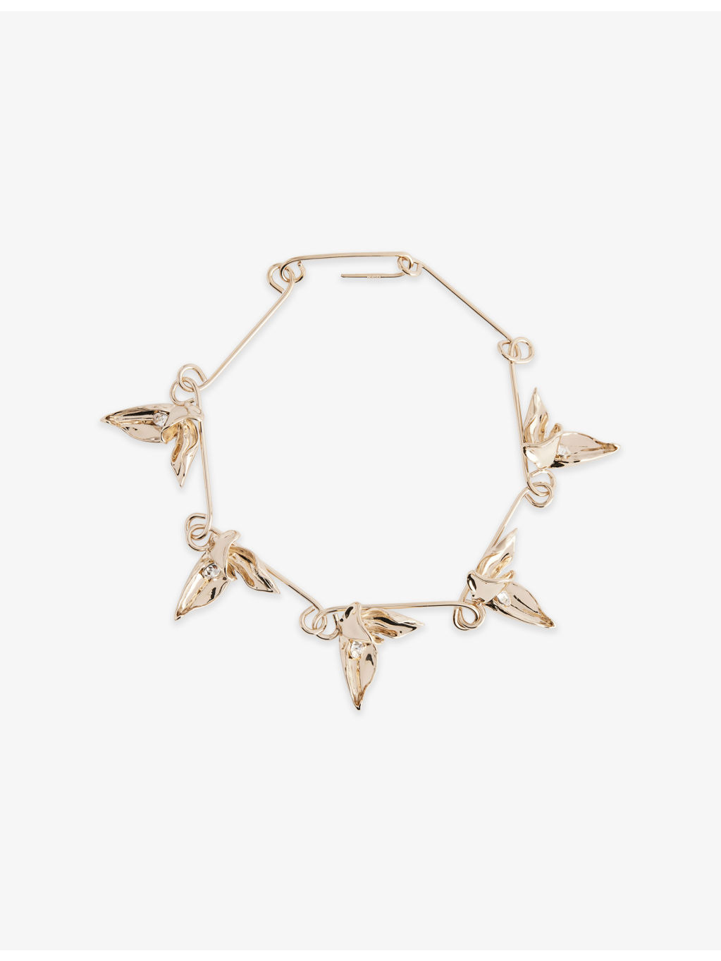 PRODUCT DETAILS - Erdem brass necklace - 95% brass, 5% glass - Hinged-clasp fastening - Geometric shape, all-over structured petal-design plaques, white crystal embellishment, polished finish - Chain length: 45cm - Chain width: 2mm - Please use a soft, dry polishing cloth - Comes with a dust bag, presented in a box Ref: R04517383