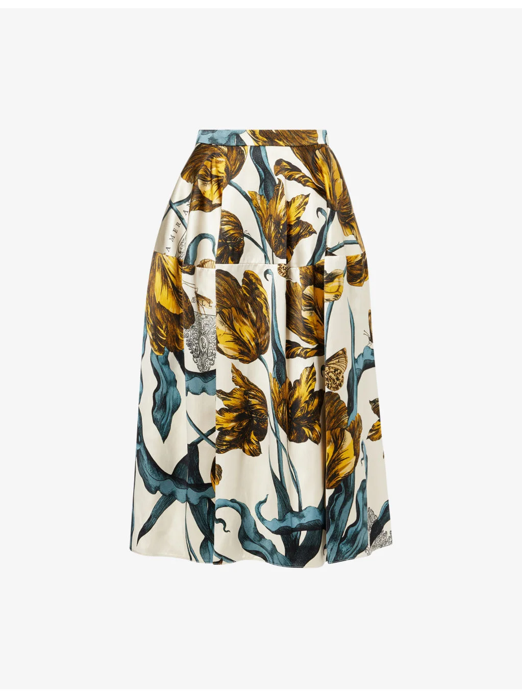 FLORAL PRINT DUCHESS MIDI SKIRT