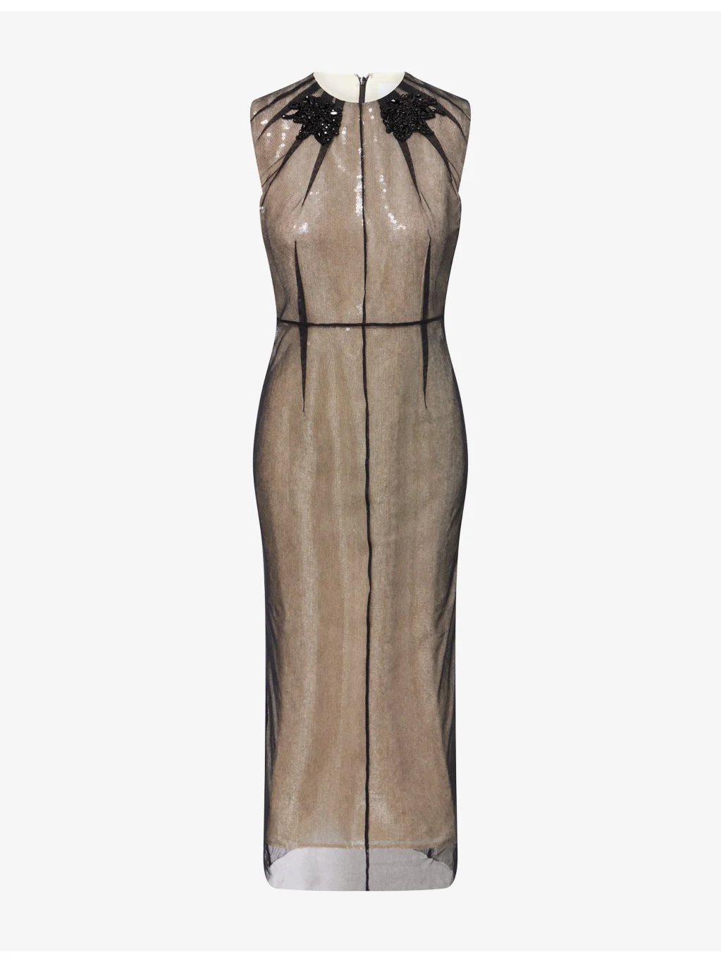 PRODUCT DETAILS - Erdem organza midi dress - 100% polyester; contrast 100% cotton - Concealed zip fastening at back - Slim fit, crewneck, sleeveless, central rear slit, sheer organza overlay, all-over crystal and sequin embellishments, midi length - Dry clean - Made in Bulgaria - True to size - Size UK 8: length 51in / 129cm - Model is 5ft 10in/1.78m and wears a size UK 8 - Midweight, non-stretch Ref: R04544801