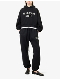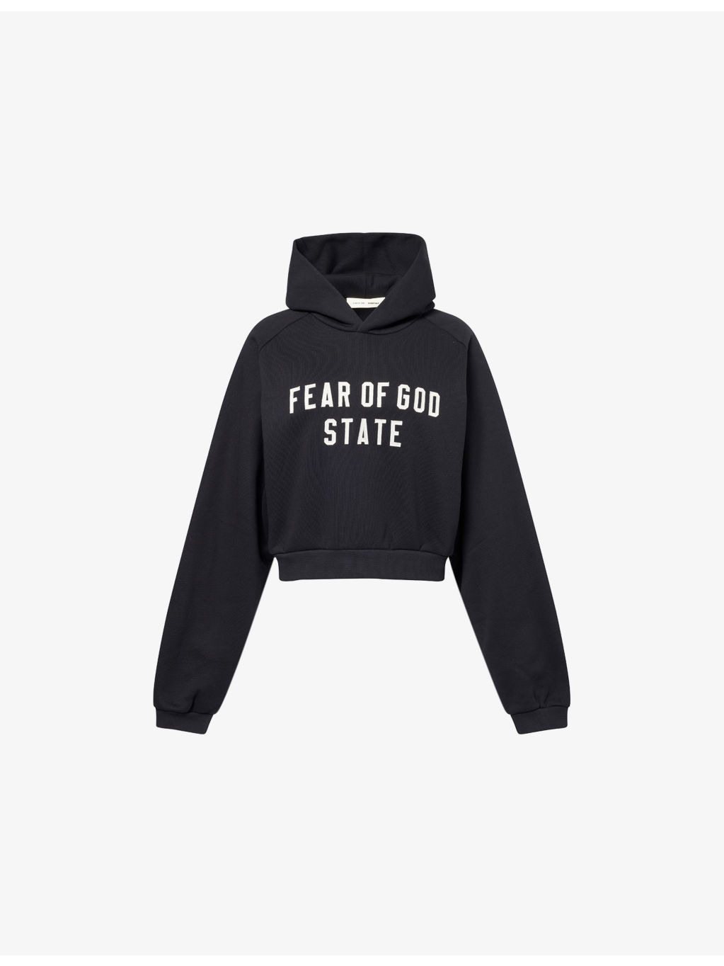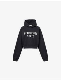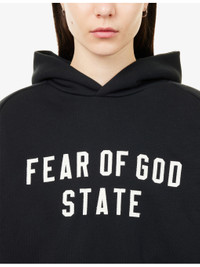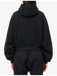 PRODUCT DETAILS - FOG x ESSENTIALS cotton-blend hoody - 80% cotton, 20% polyester - Relaxed fit, cropped, brand patch at hood, raglan long sleeves, brand patches at front, embossed branding at back, brushed interior, ribbed trims - Hand wash cold - True to size - Model is 5ft 10in/1.78m and wears a size small - Midweight, slight stretch Ref: R04496465