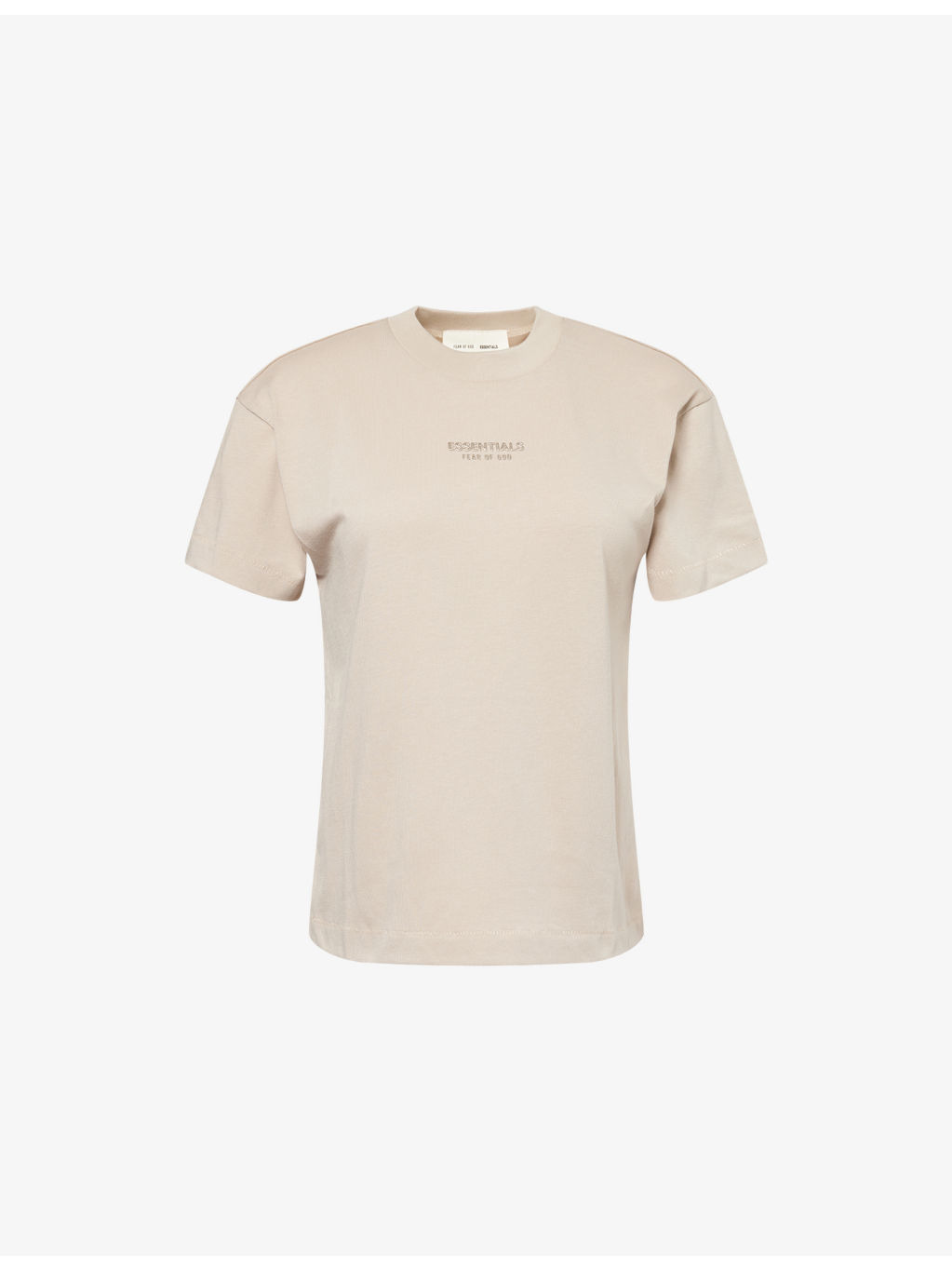 PRODUCT DETAILS - Fear of God Essentials cotton-blend T-shirt - 53% cotton, 40% polyester, 7% rayon - Classic fit, ribbed round-neck, short sleeves, embossed branding at front, brand patch at back - Hand wash cold - True to size - Model is 5ft 10in/1.78m and wears a size small - Lightweight, stretchy Ref: R04496440