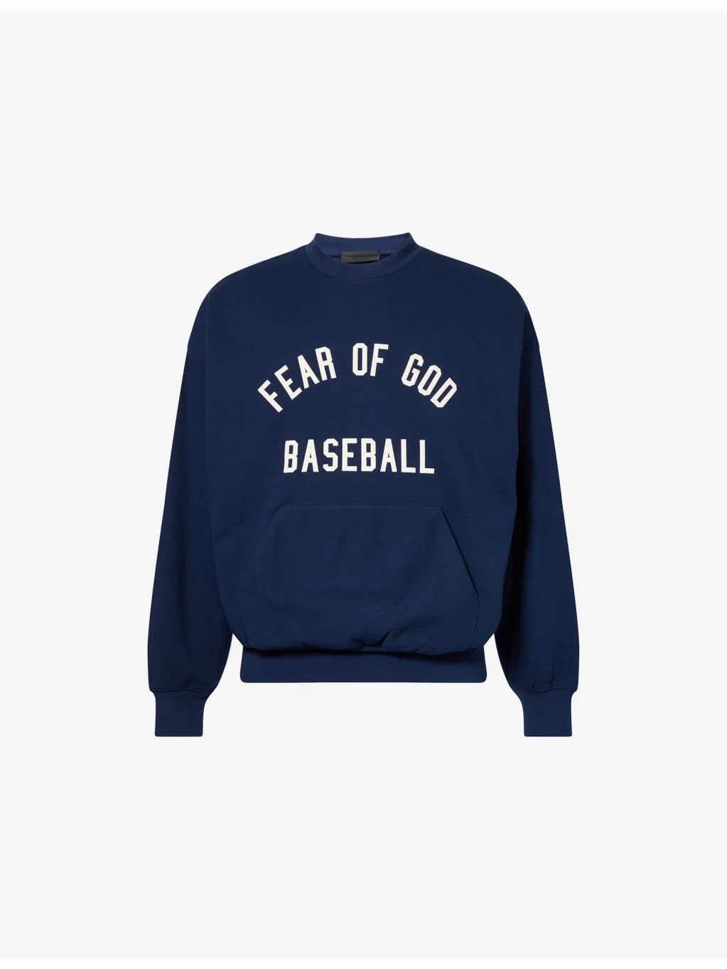 PRODUCT DETAILS - FOG x ESSENTIALS x MLB cotton-jersey sweatshirt - 100% cotton - Relaxed fit, crewneck, long sleeves, kangaroo pocket at front, embossed brand print at front and back, brand patch at back, brushed interior, ribbed trims - Hand wash cold - Model is 6ft 2in/1.88m and wears a size medium - Midweight, stretchy Ref: R04562934