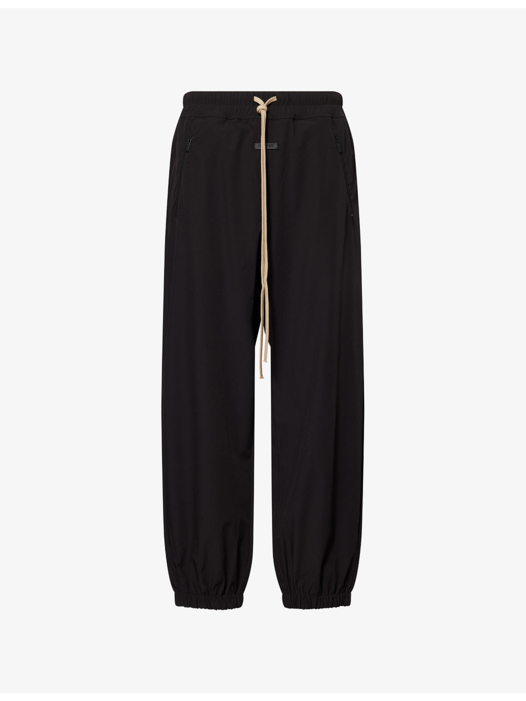 PRODUCT DETAILS - FOG x ESSENTIALS shell joggers - 51% polyamide, 42% polyester, 7% elastane; lining 100% polyester - Self-tie fastening at waist - Elasticated drawstring waist, de-bossed logo patch at front, two slanted zipped pockets at front with branded puller, elasticated zipped cuffs - Dry clean - Made in Italy - Model is 6ft 2in/1.88m and wears a size medium - Lightweight, non-stretch Ref: R04519791