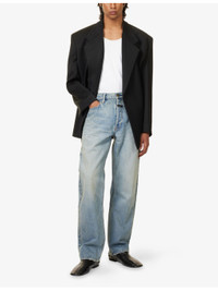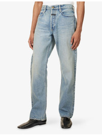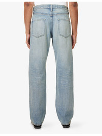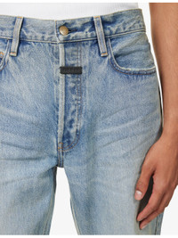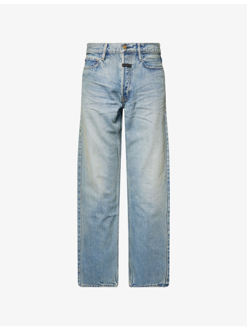 PRODUCT DETAILS - Fear of God denim jeans - 100% cotton - Button and button-fly fastening - Mid rise, straight fit, five pockets, mid wash, brand patch at front - Machine wash mild - Size 30: rise 12in / 30.4cm, inside leg 33in / 83.8cm, leg opening 18in / 45.7cm - Model is 6ft 2in/1.88m and wears a size UK 30 - Midweight, non-stretch Ref: R04519818