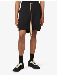 PRODUCT DETAILS - Fear of God woven shorts - 51% polyamide, 42% polyester, 7% elastane - Pulls on - Relaxed fit, drawstring waist, side pockets, log patch at front - Machine wash mild - Model is 6ft 2in/1.88m and wears a size medium - Lightweight, non-stretch Ref: R04519816