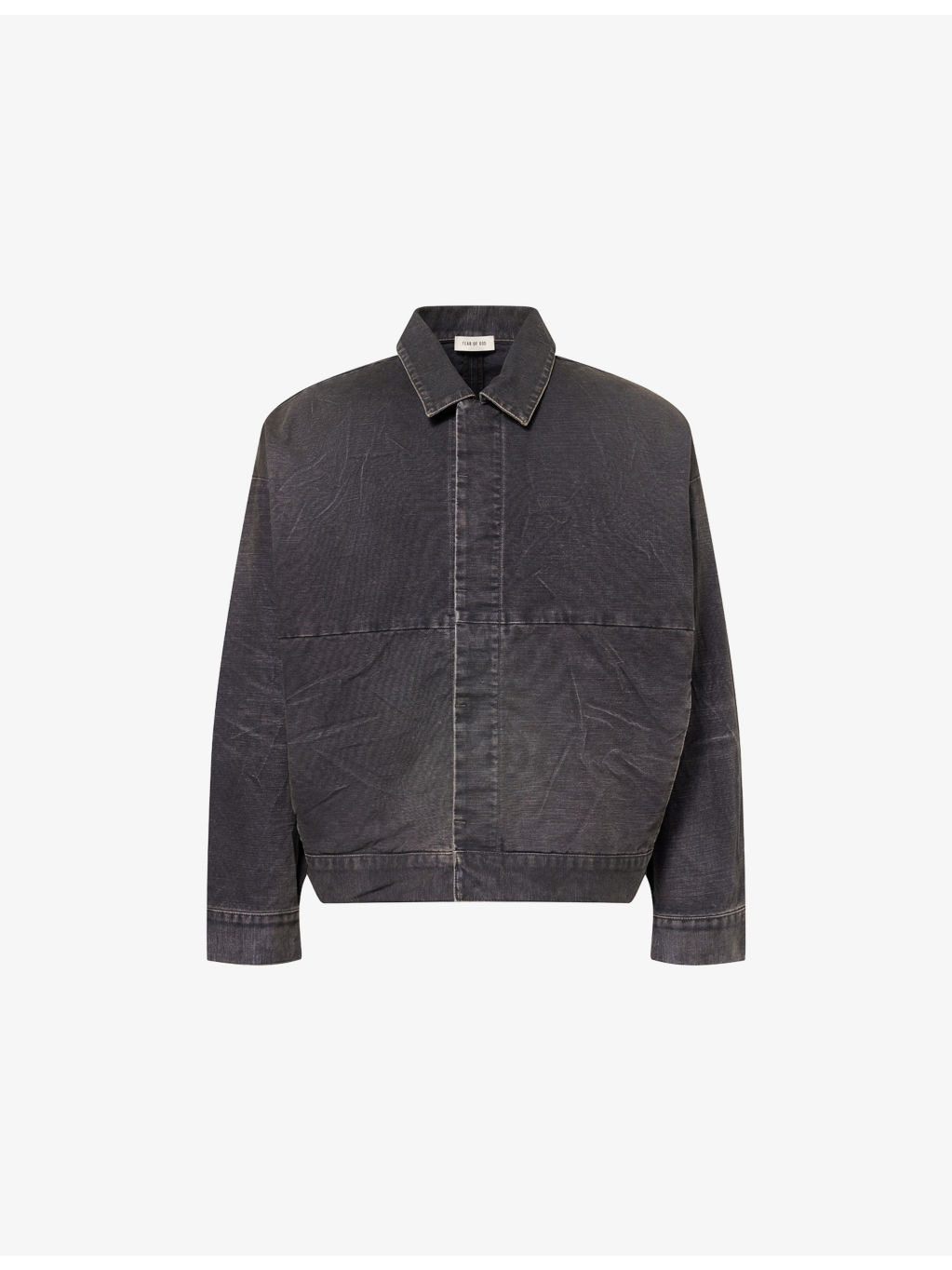 PRODUCT DETAILS - Fear Of God denim jacket - 100% cotton - Concealed button fastenings at front - Relaxed fit, shirt collar, long sleeves, buttoned cuffs, two slip pockets at front, de-bossed logo patch at back, all-over faded wash, cropped style - Hand wash cold - Made in Japan - Size medium: length 27.1in / 69cm, chest 53.1in / 135cm - Model is 6ft 2in/1.88m and wears a size medium - Midweight, non-stretch Ref: R04519793