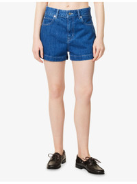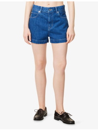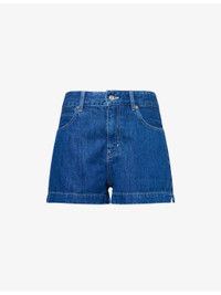 PRODUCT DETAILS - FRAME denim shorts - 100% cotton - Button and zip-fly fastenings at front - Regular fit, high-rise, belt loops, five pockets - Machine wash at 30°C - Made in Turkey - True to size - Size 26: rise 11.5in / 29cm, inside leg 2.5in / 6.5cm, leg opening 24in / 61cm - Model is 5ft 10in/1.78m and wears a size 26 - Midweight, non-stretch Ref: R04461258