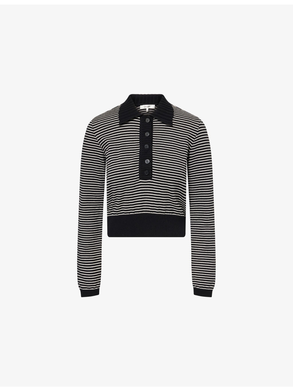 PRODUCT DETAILS - FRAME cotton-knit jumper - 100% cotton - Exposed button fastening at front - Regular fit, polo collar, long sleeves, all-over striped pattern, ribbed trims - Dry clean - Made in Portugal - True to size - Model is 5ft 10in/1.78m and wears a size small - Lightweight, slight stretch Ref: R04461242