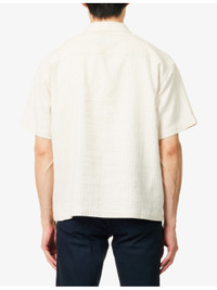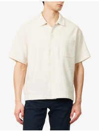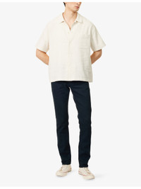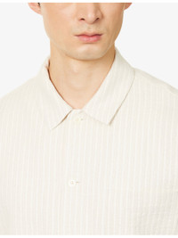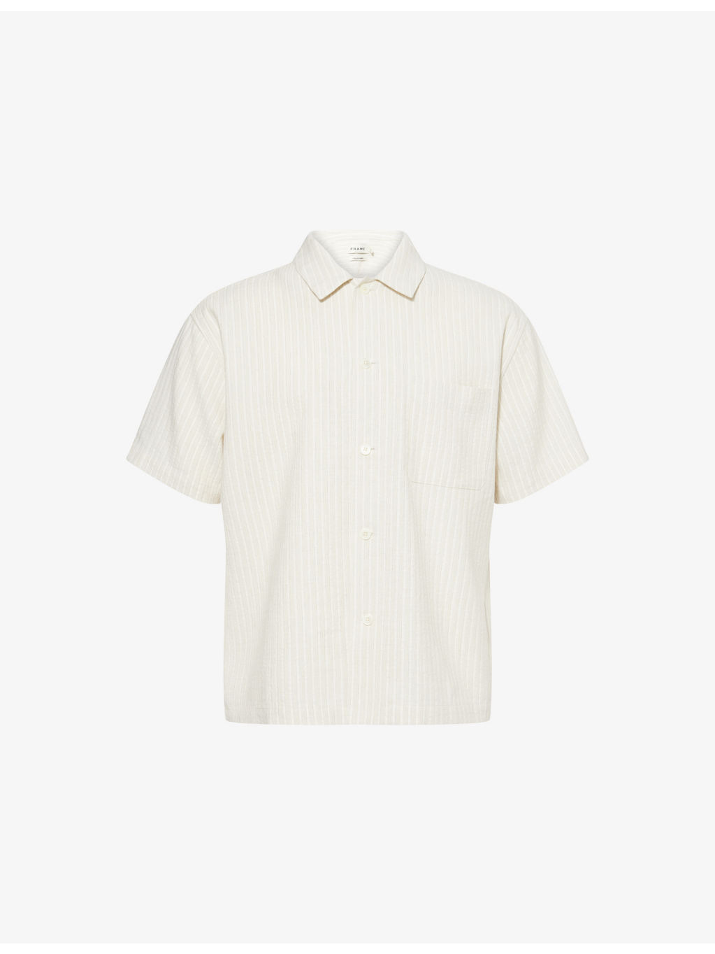 PRODUCT DETAILS - FRAME cotton-blend shirt - 40% cotton, 30% viscose, 24% linen, 6% polyester - Exposed button fastening at front - Classic collar, one patch pocket at front, striped pattern, all-over woven texture - Dry clean only - Size medium: length 28.7in / 73cm, chest 23.6in / 60cm - Model is 6ft 2in/1.88m and wears a size medium - Lightweight, non-stretch Ref: R04465402